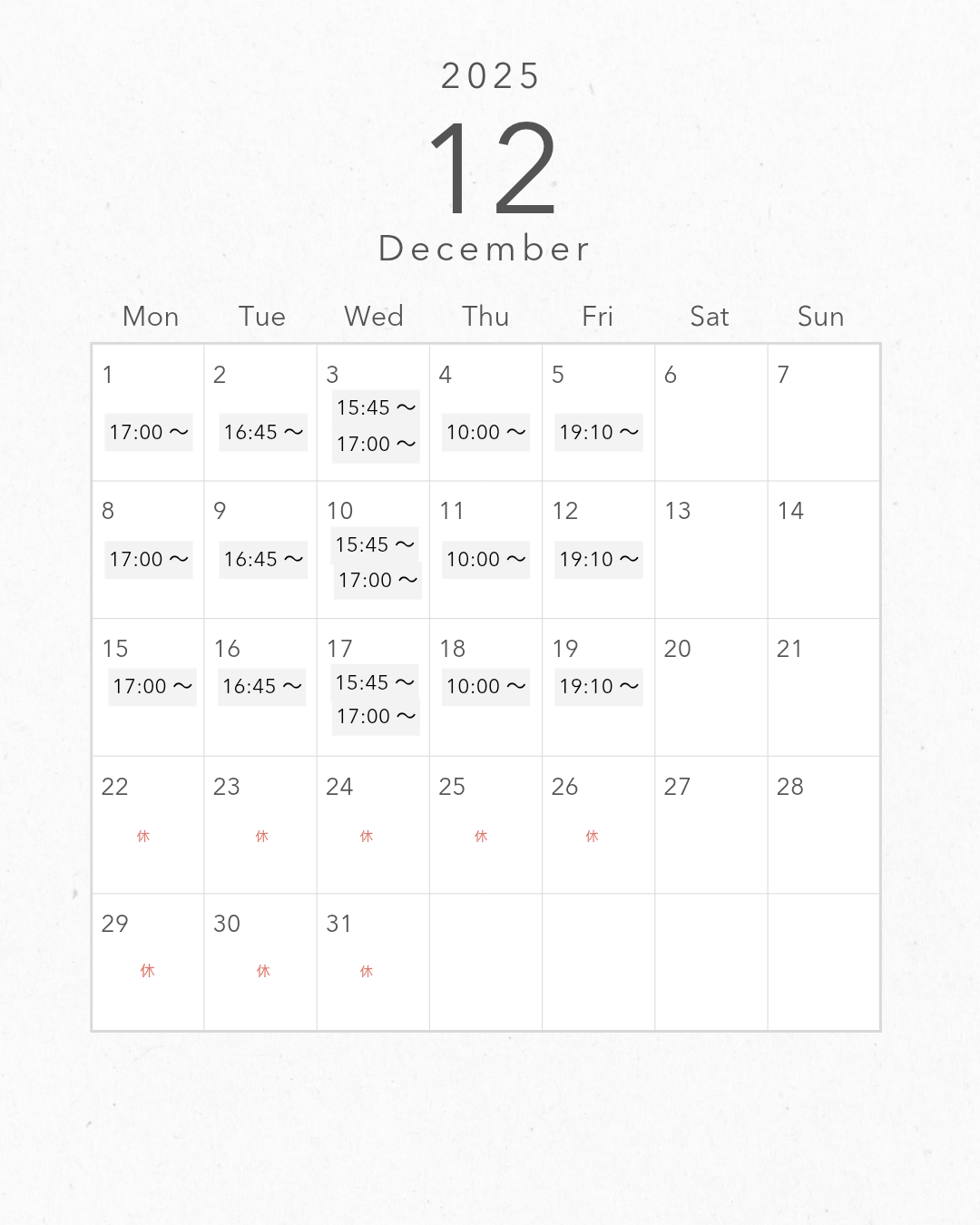 🌸12月1日(月)のお稽古は、講師急用のため22日(月)に変更いたします。