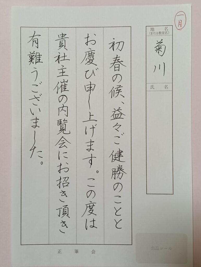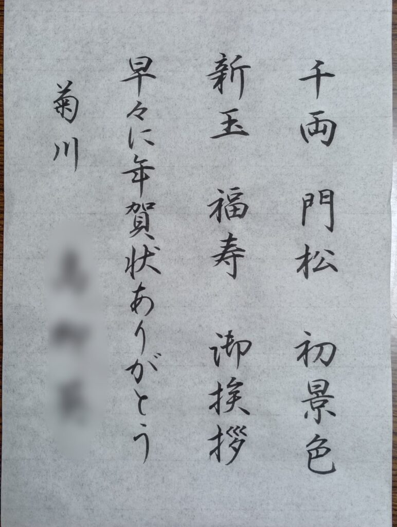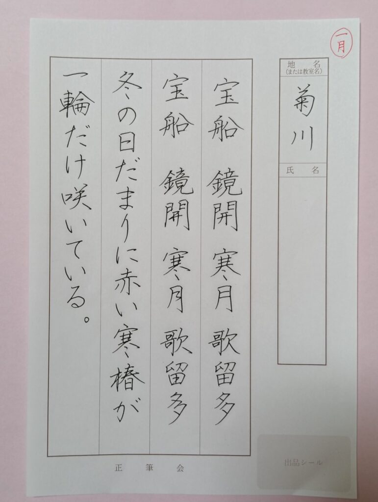 教室通信 ✽1月のお手本 教室通信 2025.10.04 🌸今月は、八つ切サイズの書き初め作品に取り組みます 子ども毛筆 子ども毛筆 子ども毛筆 大人ペン字(級) 大人ペン字(段) 大人ペン字(師範お手紙) 大人実用の書(級)
